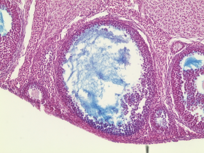 M. Suarez, E. Meinke, V. Romero and Z. Craig, 2026, 'Craig Lab: Mus Musculus Donor APOS001AB Antral Follicles Alcian Blue Slide 1J', https://mother-db.org/MDB0000518, Multispecies Ovary Tissue Histology Electronic Repository, Retrieved: March 3, 2026