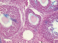 M. Suarez, E. Meinke, V. Romero and Z. Craig, 2026, 'Craig Lab: Mus Musculus Donor APOS001AB Secondary Follicles Alcian Blue Slide 1I', https://mother-db.org/MDB0000529, Multispecies Ovary Tissue Histology Electronic Repository, Retrieved: March 3, 2026